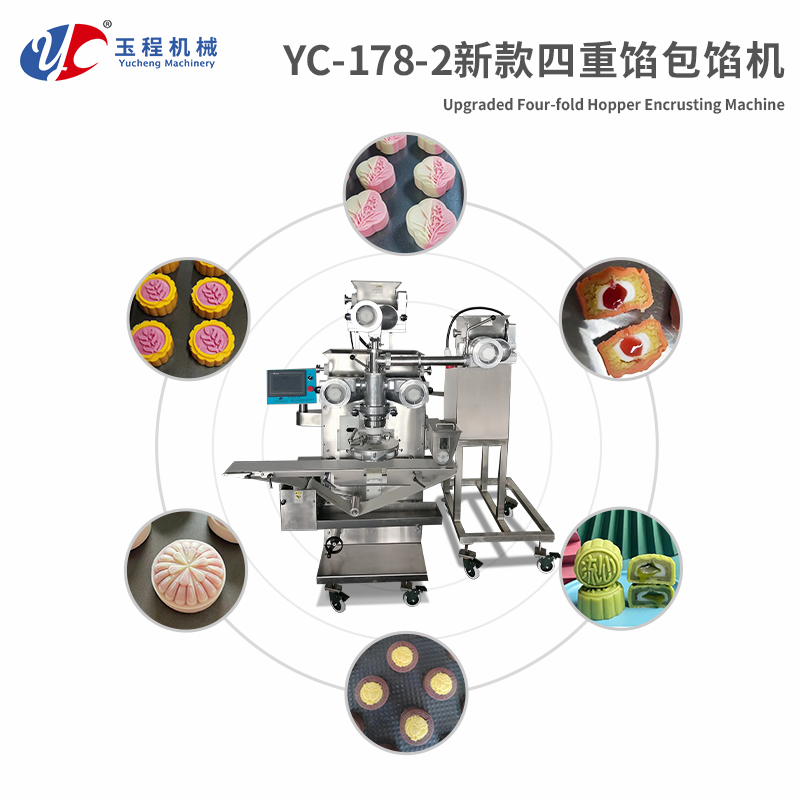 適用范圍:可適用于:烘焙類產品、魚漿類產品、早餐類產品、蒸煮類產品d等,另可生產四重包餡產品如:四重流心月餅、漸變色流心月餅、雙色和果子、金鑲玉月餅。